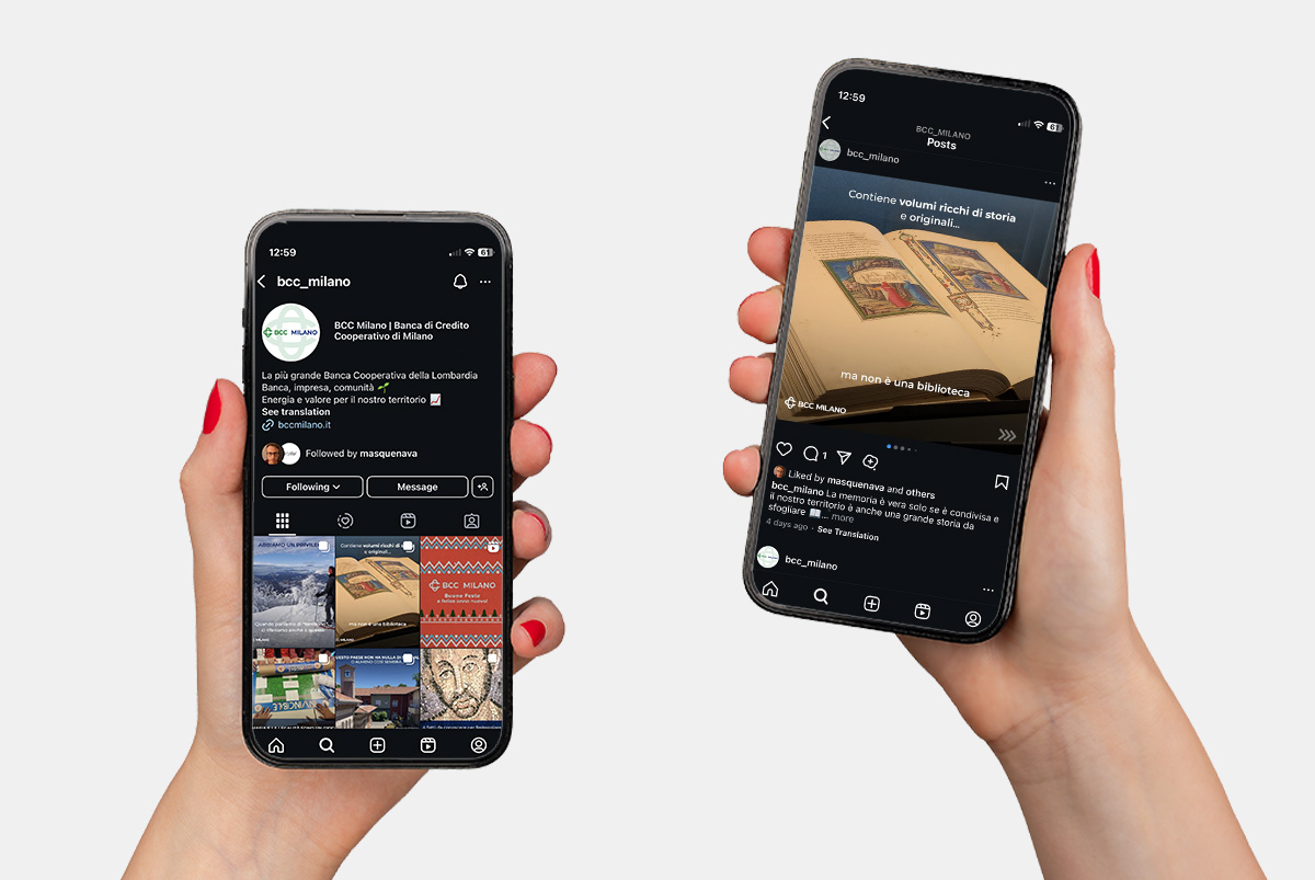 L’ongoing di un simile progetto di comunicazione non può che essere articolato: ATL e BTL, on e offline, strategia e operatività. Oltre ai formati print, e agli asset di comunicazione necessari per interfacciarsi con oltre 27.000 soci e 100.000 clienti (house organ, bilanci sociali, OOH, brochure), MEKKO ha curato eventi, contribuito all’organizzazione di ben due decennali – sessantesimo e settantesimo anniversario, rispettivamente nel 2014 e 2016 – e contribuito alla transizione digitale di parte della comunicazione del marchio. I canali di BCC Milano oggi sono un punto di riferimento per una community di oltre 15.000 utenti e la piattaforma La Tua Banca è un importante touchpoint per iniziative e aggiornamenti.